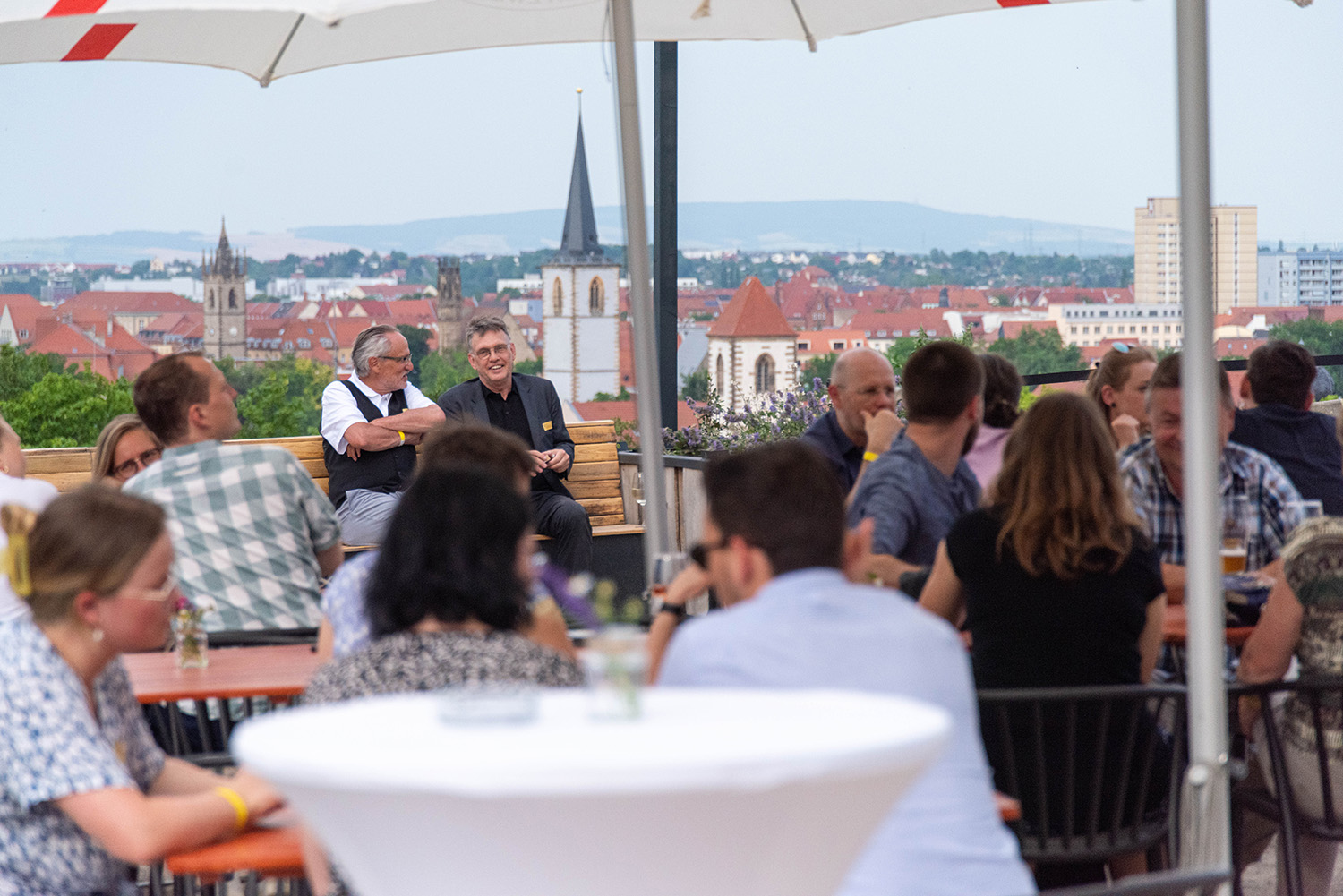 Stimmungsvoll und mit fantastischem Ausblick auf Erfurt … selbst das erwartete Gewitter blieb aus: Das gemeinsame Sommerfest von Ingenieurkammer Thüringen und Architektenkammer Thüringen auf dem Petersberg war rundum gelungen und wird vielen positiv in Erinnerung bleiben.