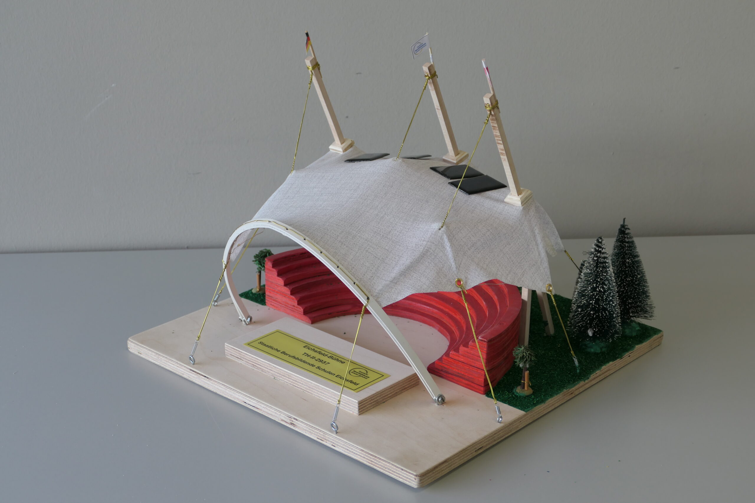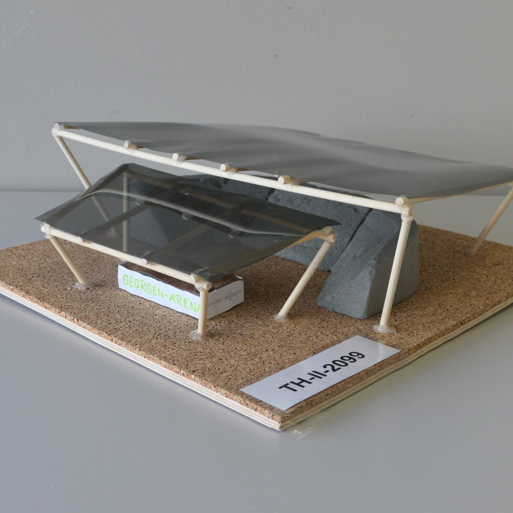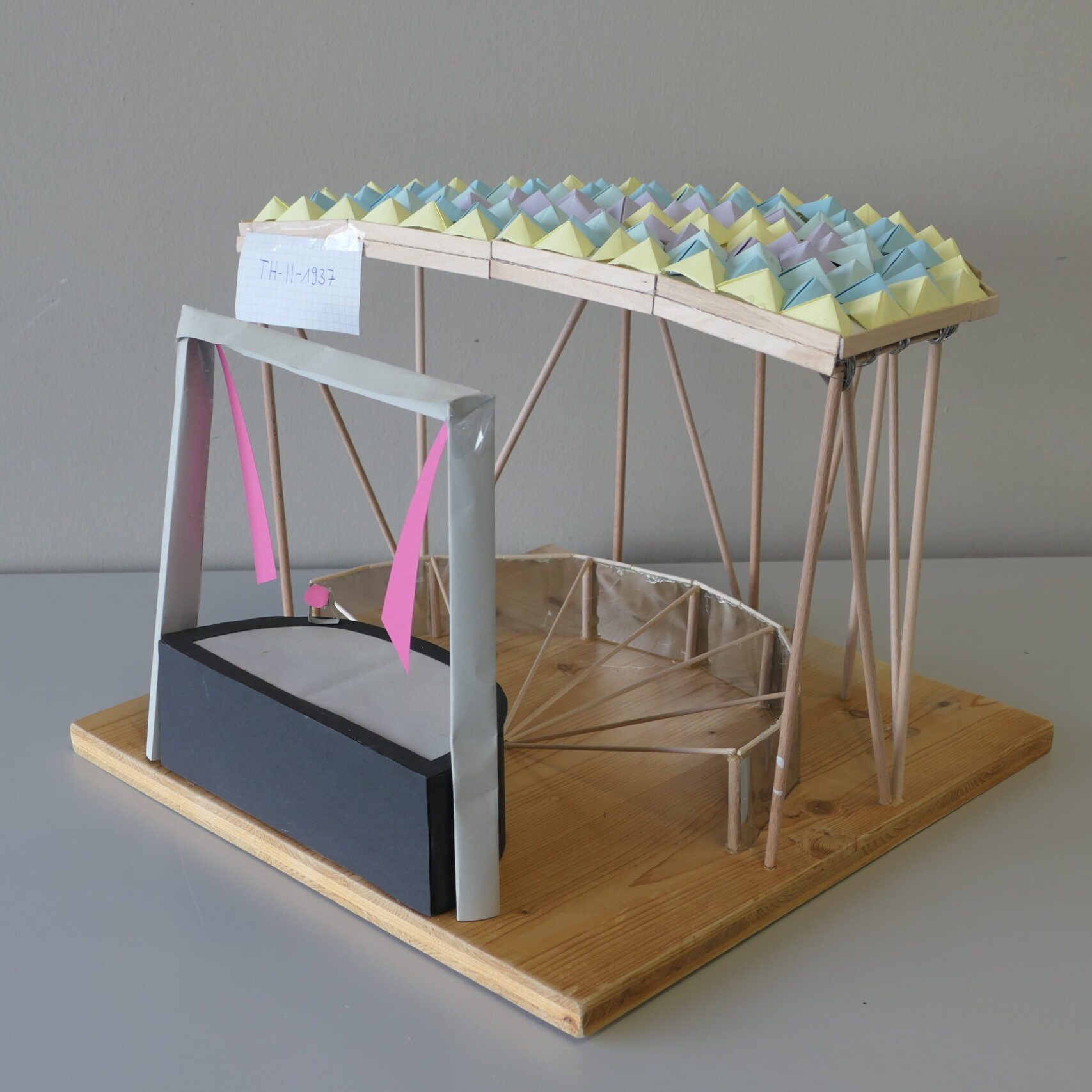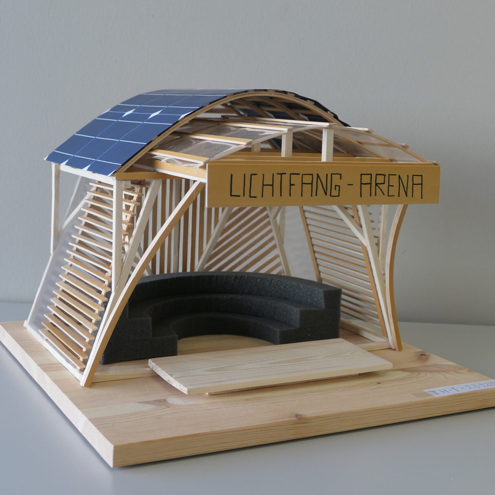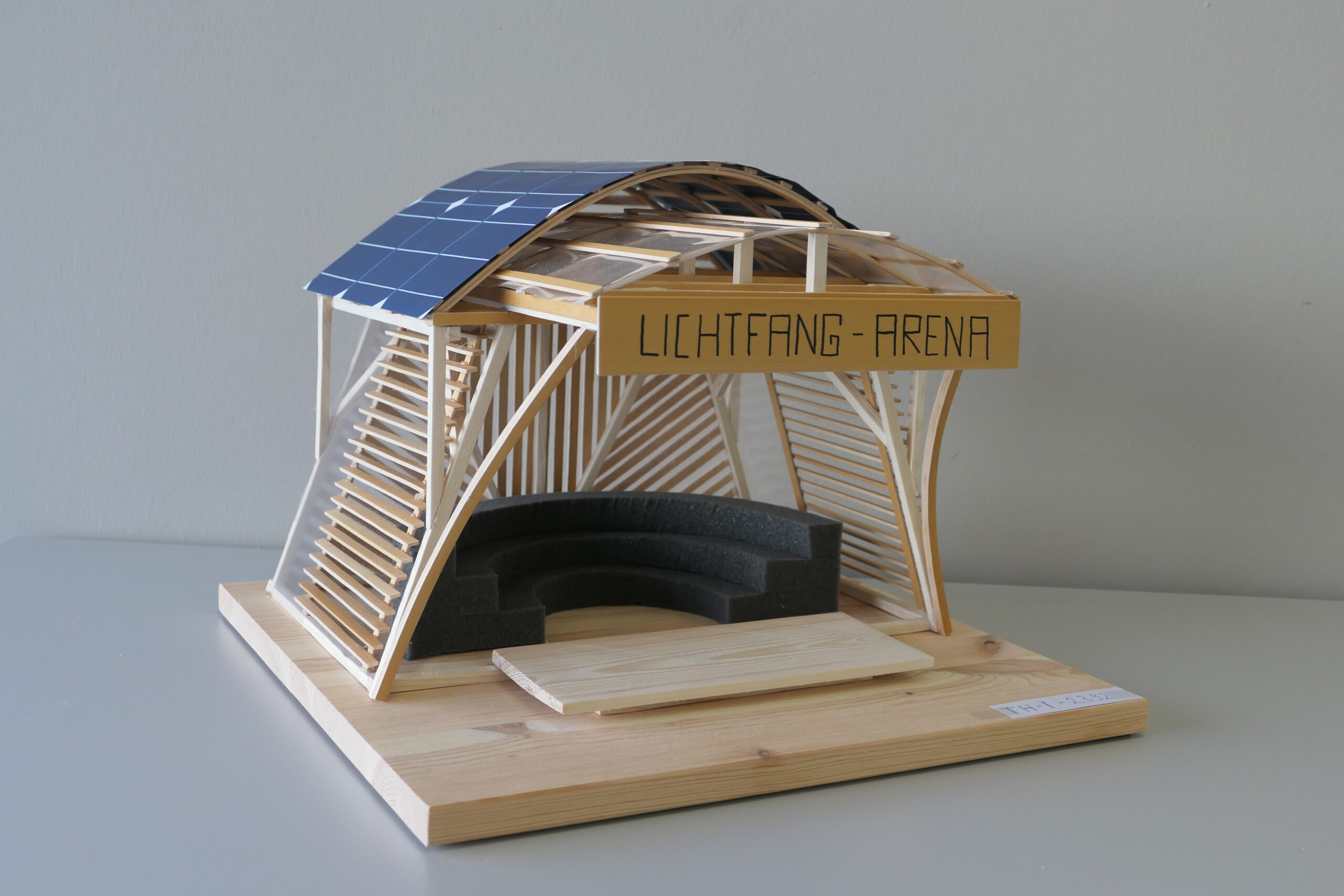 Aufgabe ist es, eine Überdachung für eine Freiluftarena zu entwerfen und zu bauen. Die Dachkonstruktion muss eine Last von mindestens 250 g tragen und einer Windbelastung standhalten, die mit einem Fön simuliert wird. Bei der Gestaltung sind eurer Kreativität keine Grenzen gesetzt – wir freuen uns auf viele tolle Modelle!