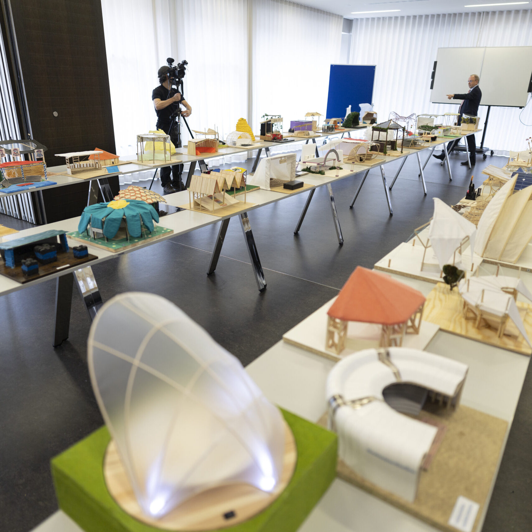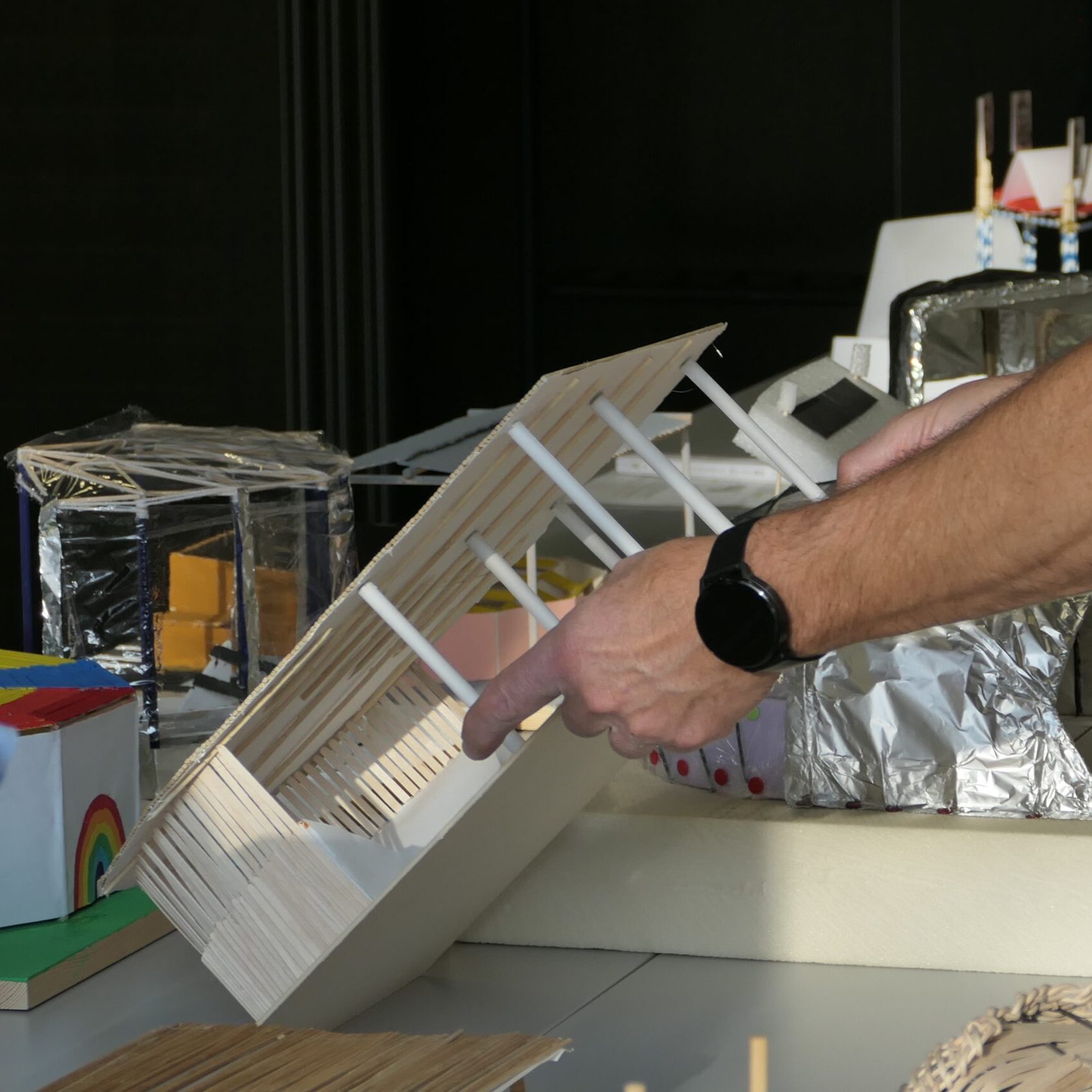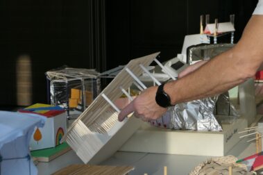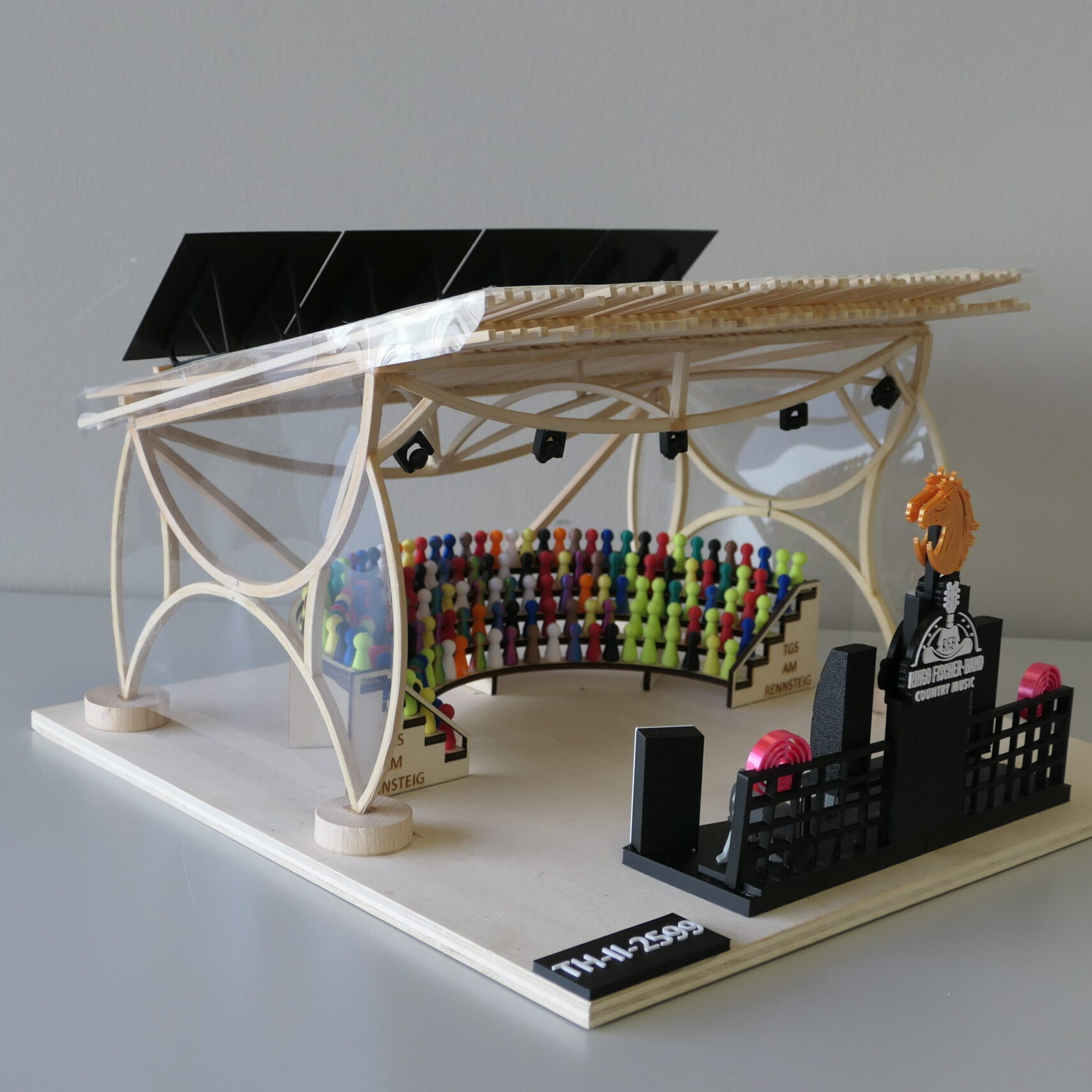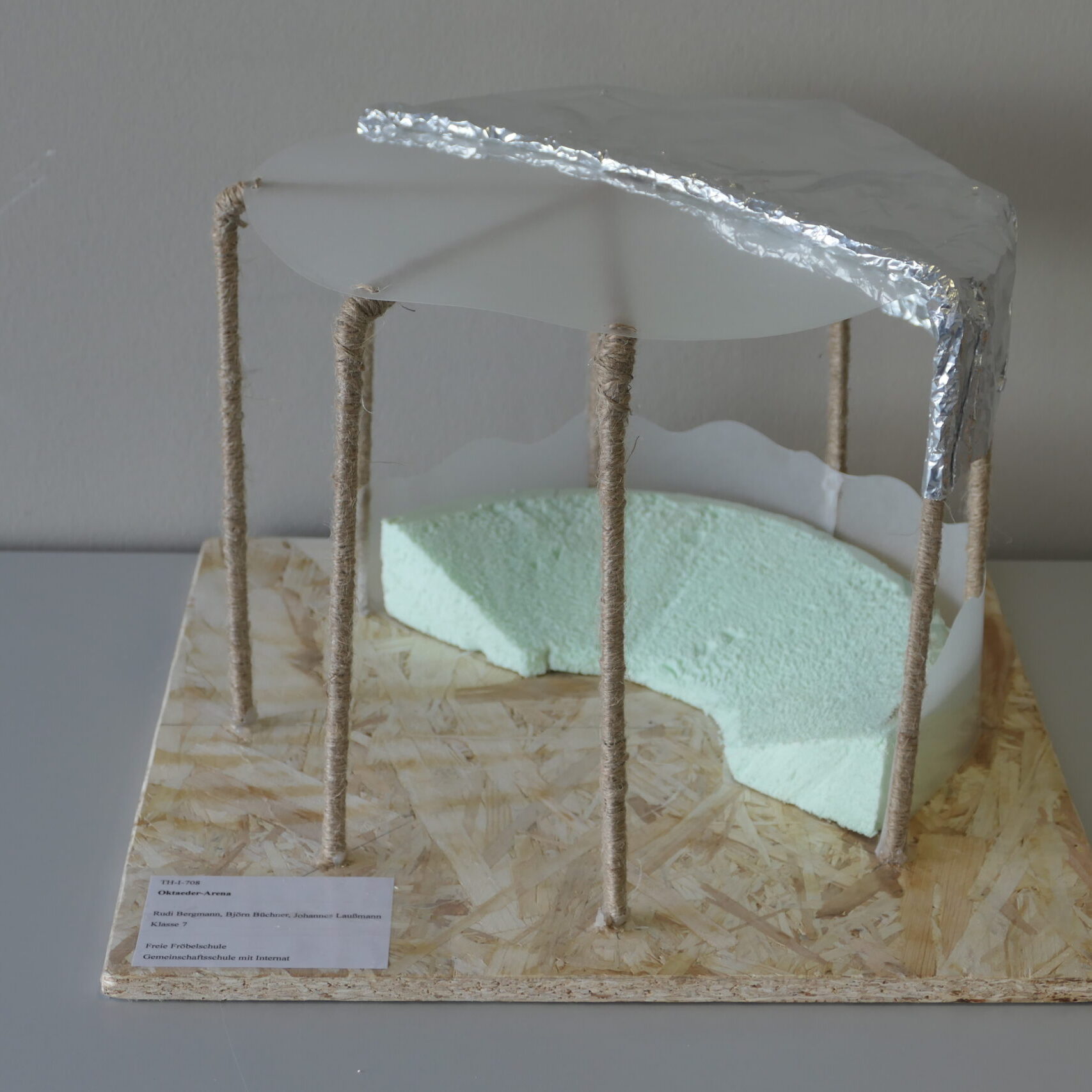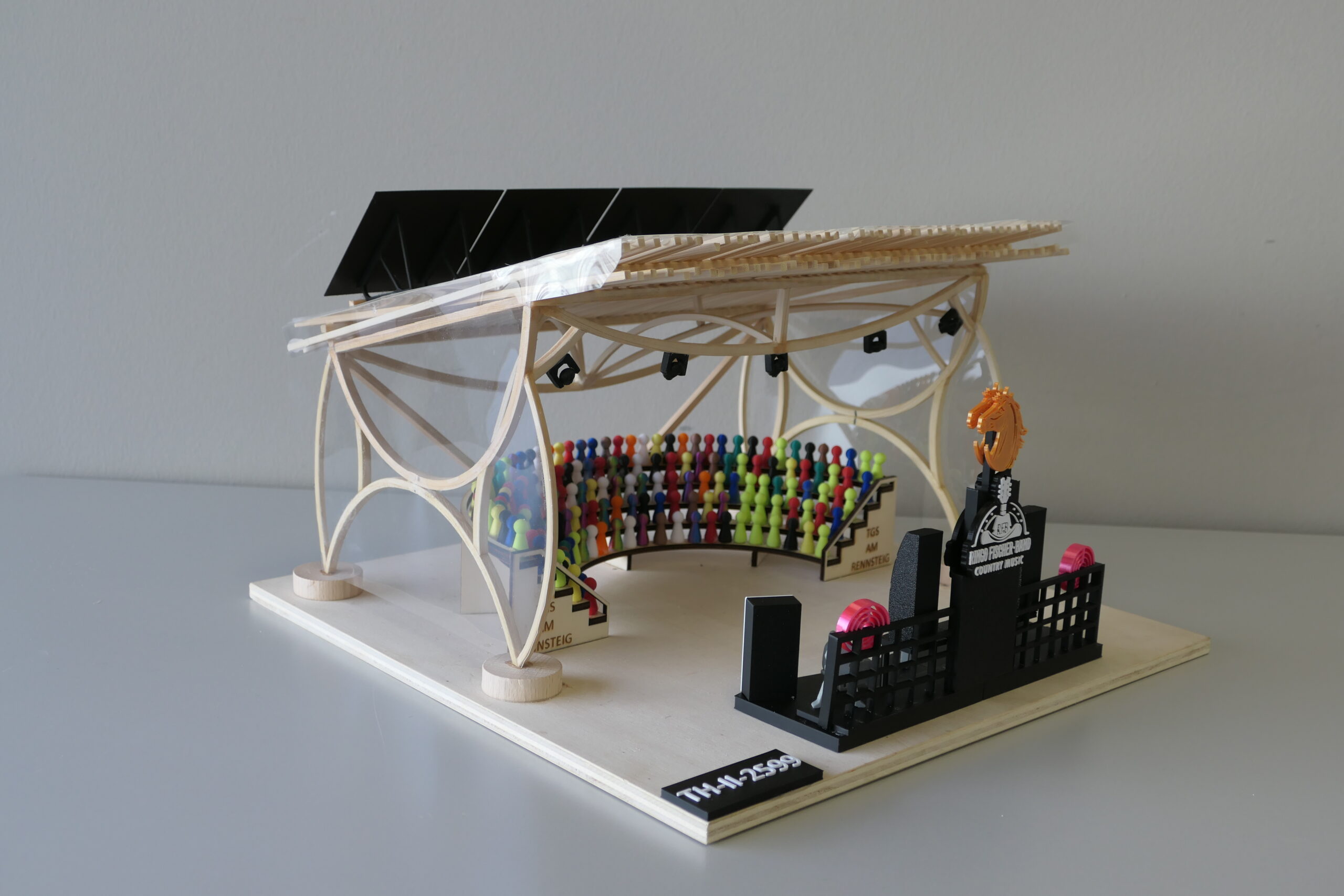 Aufgabe ist es, eine Überdachung für eine Freiluftarena zu entwerfen und zu bauen. Die Dachkonstruktion muss eine Last von mindestens 250 g tragen und einer Windbelastung standhalten, die mit einem Fön simuliert wird. Bei der Gestaltung sind eurer Kreativität keine Grenzen gesetzt – wir freuen uns auf viele tolle Modelle!